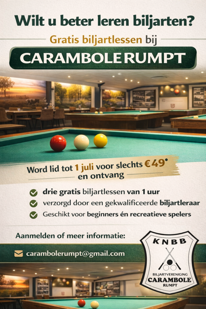 Samen biljarten, samen beter worden – wij zien u graag bij Carambole Rumpt.