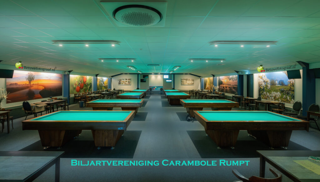 Op 28 november 2024 is er wederom een verbetering aangebracht. Dankzij Steinhoff en Disc hebben we schitterende plaatjes uit de Betuwe in ons lokaal hangen. Het resultaat mag er zijn. Op de achterwand zal binnenkort nog een mooi exemplaar worden aangebracht van de Carambole zelf, hierin zullen ook de logo’s van de het district Betuwe Veenendaal en de KNBB worden verwerkt.